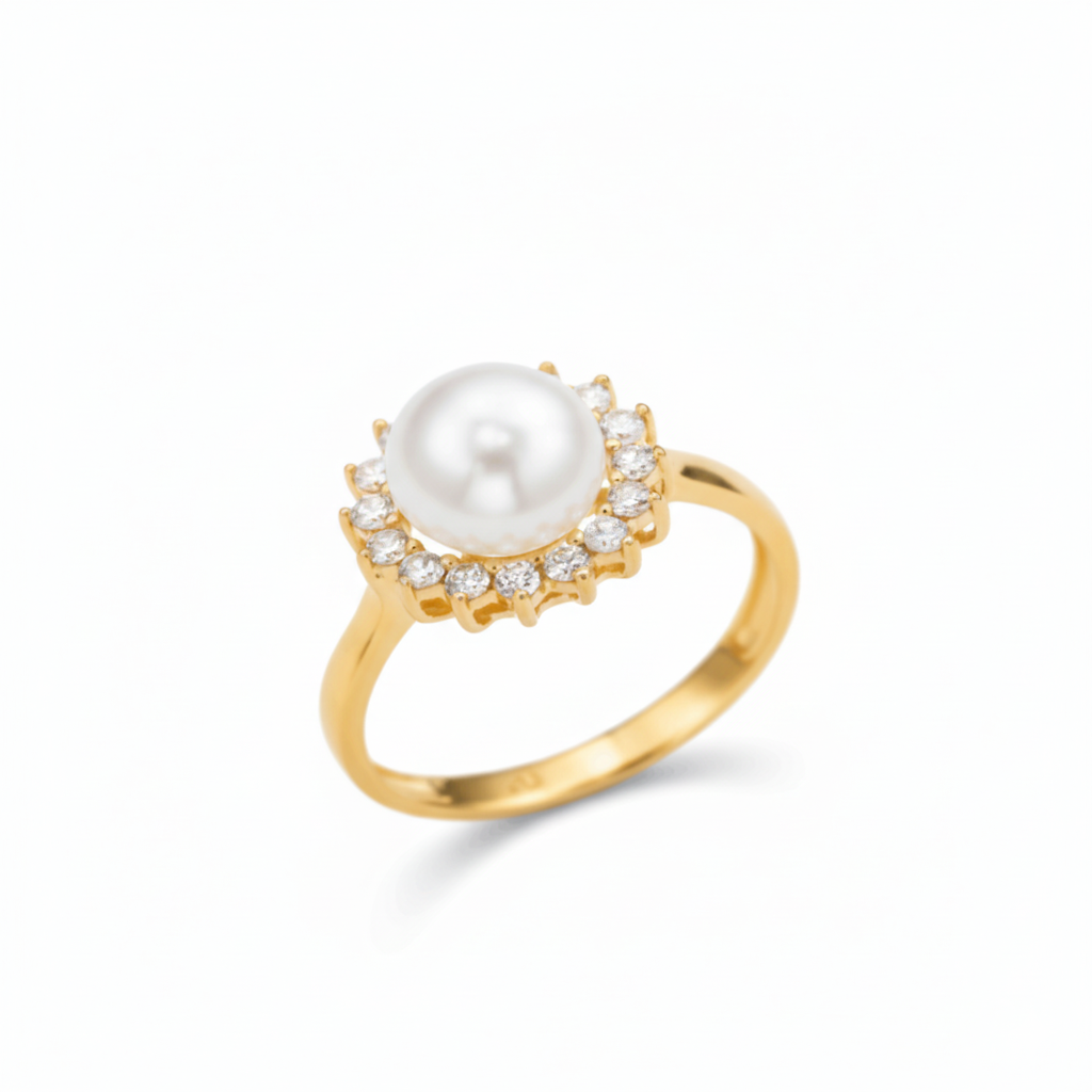 RING 9KY PEARL HALO TDW=0.32CT