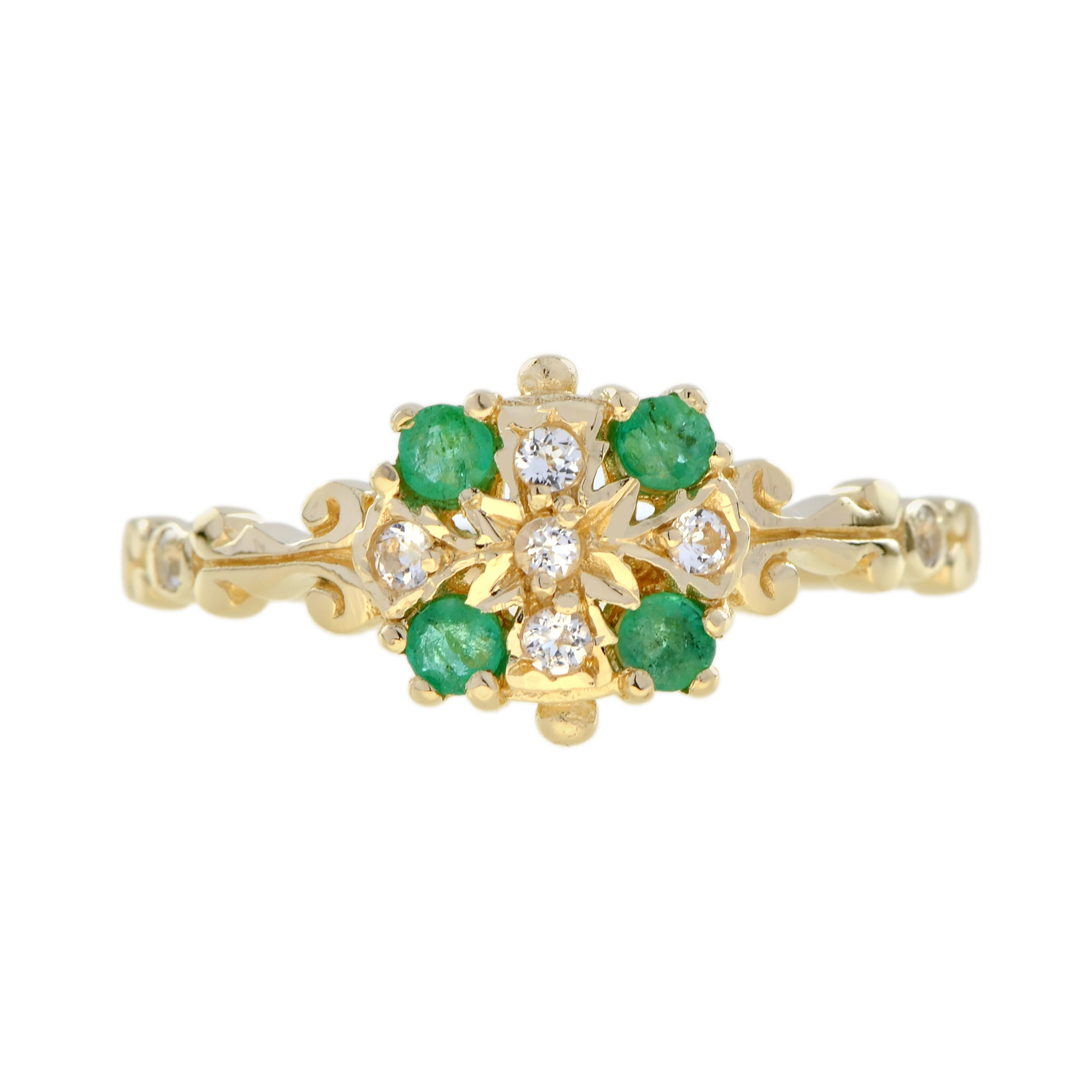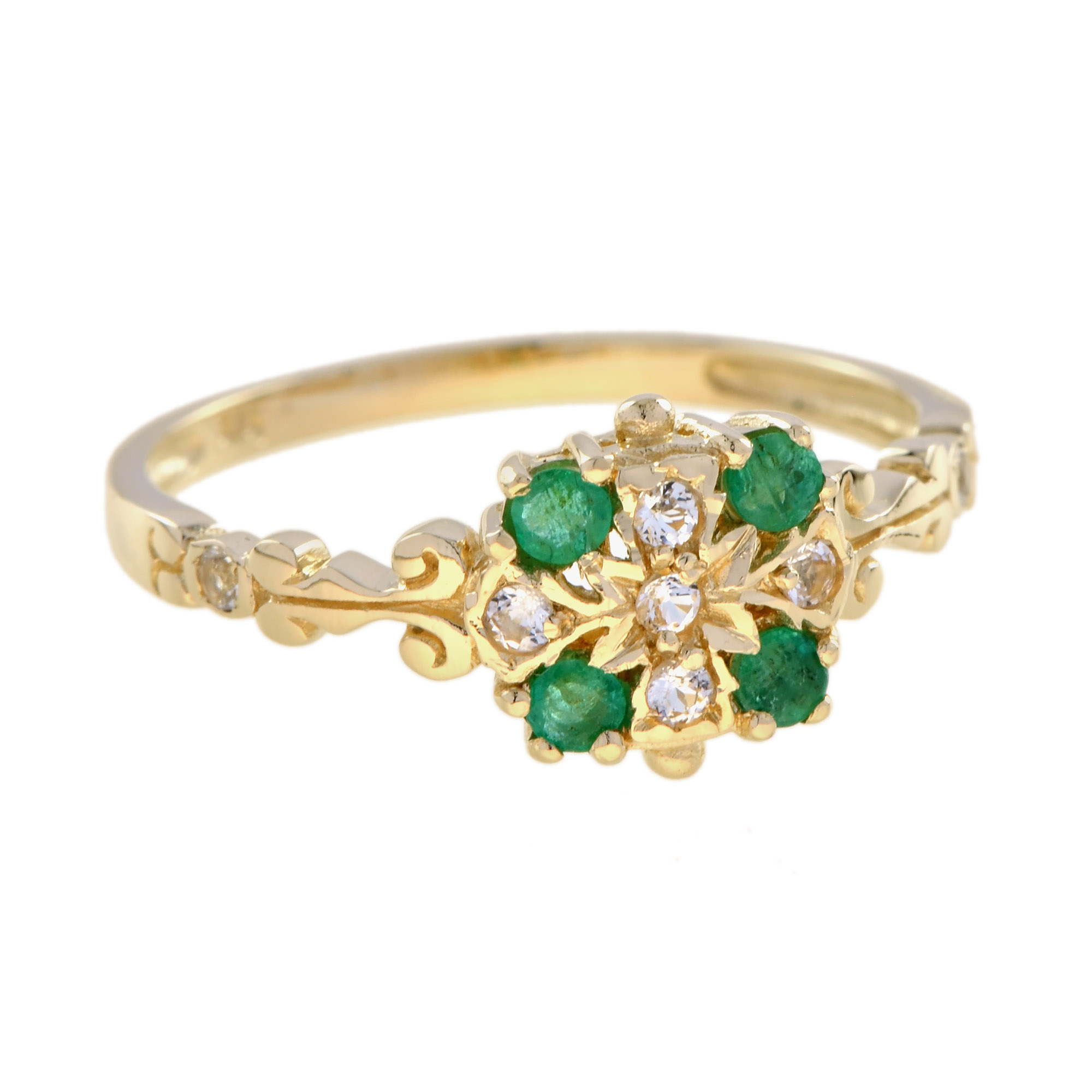 RING 9KY EMERALD WITH WHITE TOPAZ