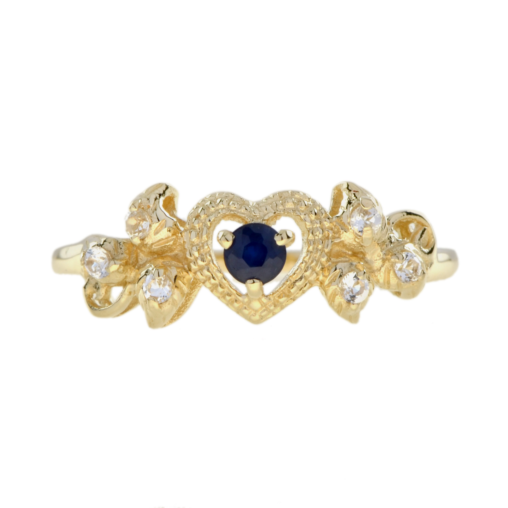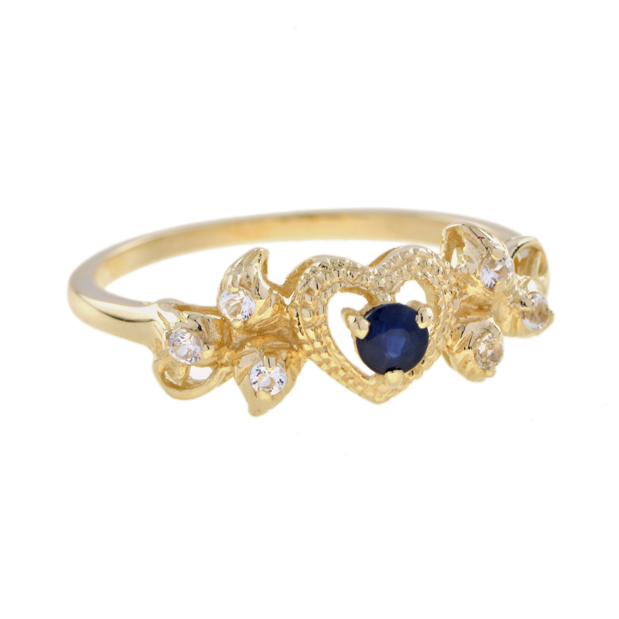 RING 9KY SAPPHIRE WITH WHITE TOPAZ, ROUND CUT