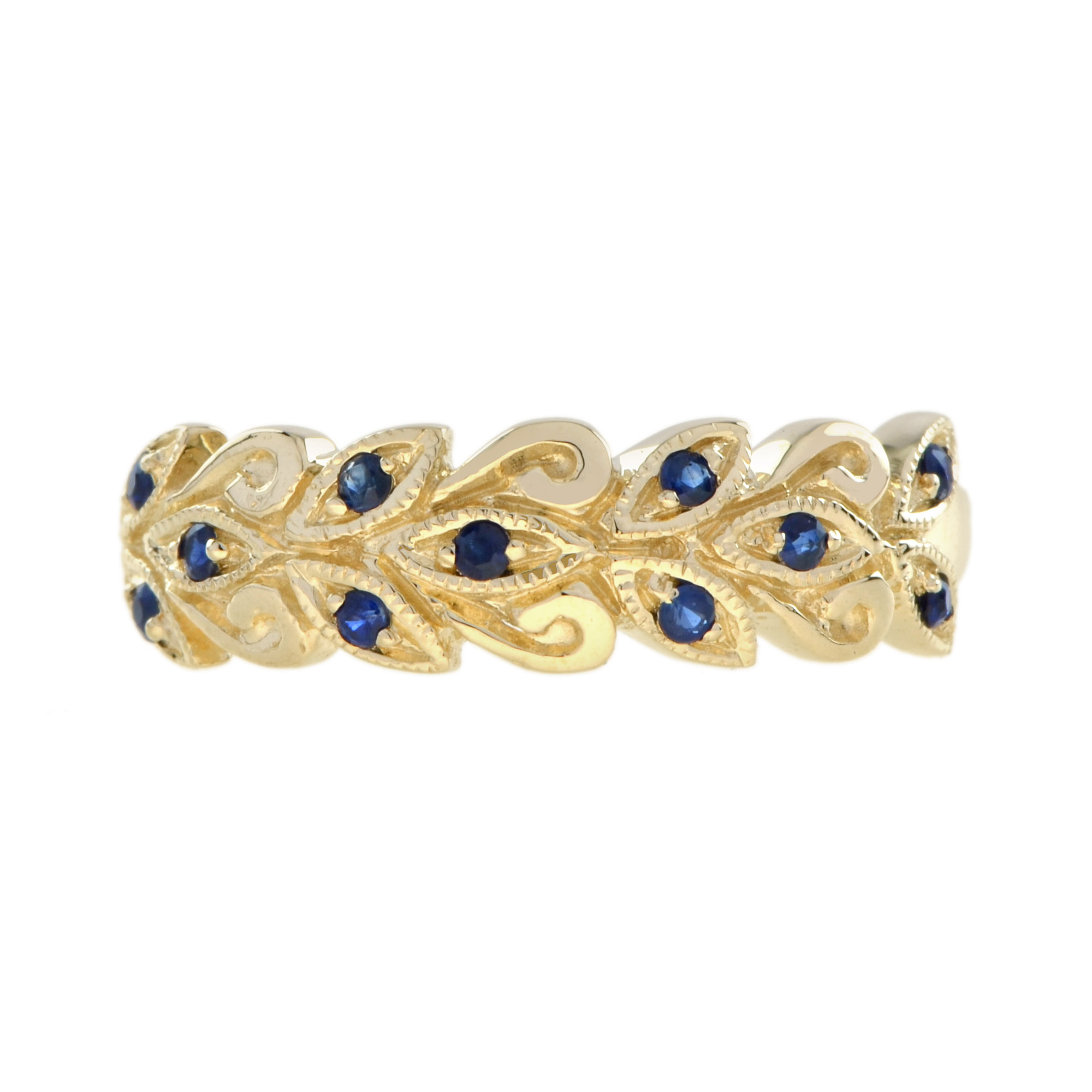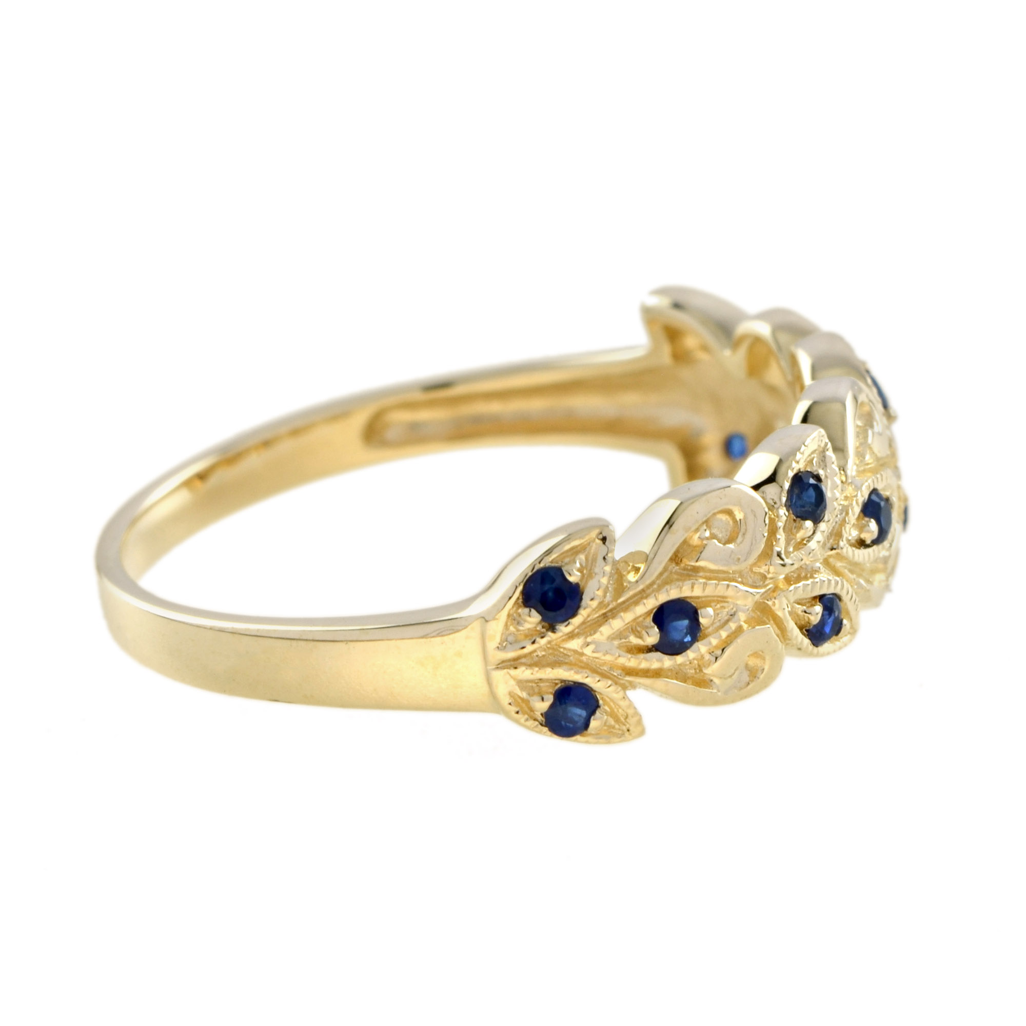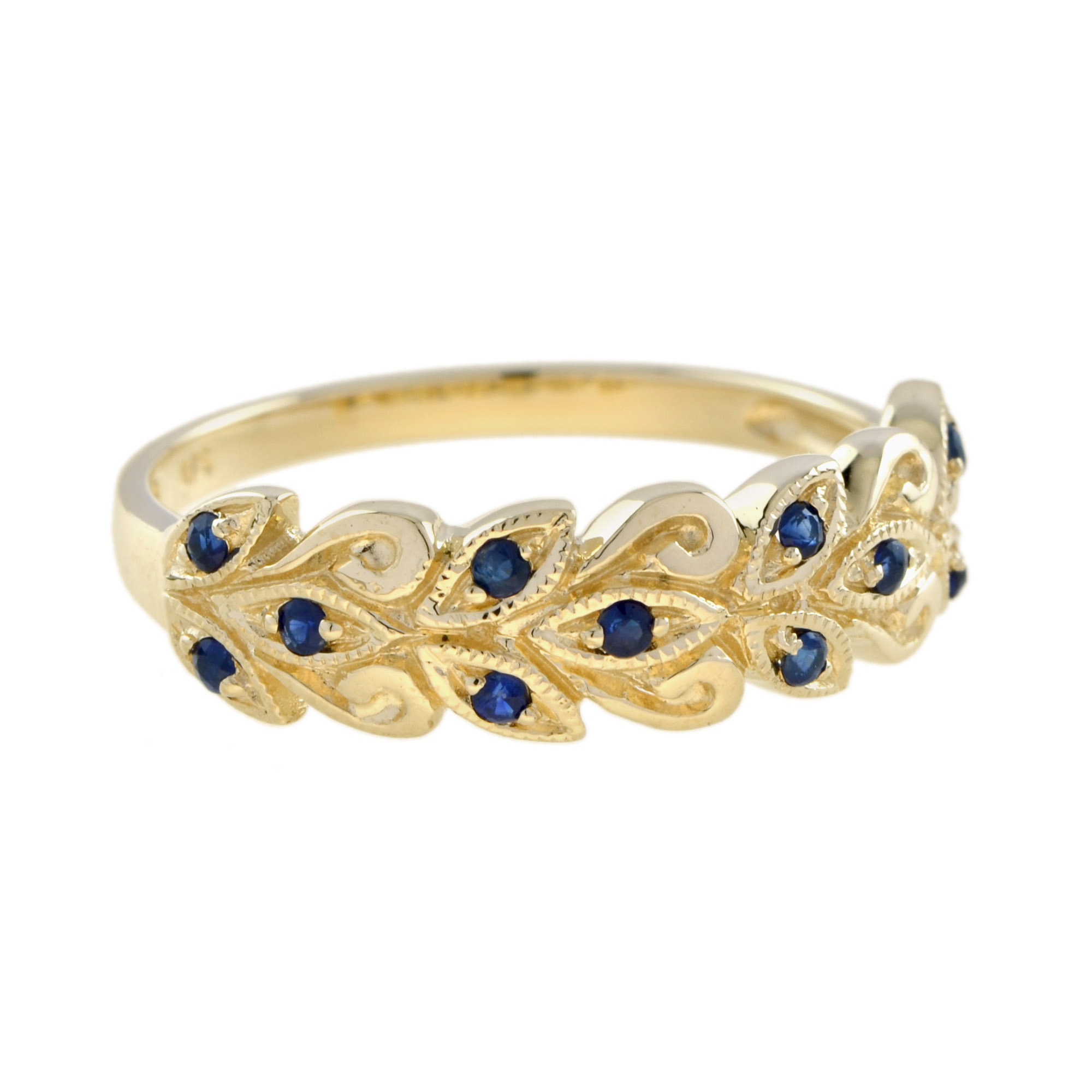 RING 9KY SAPPHIRE LEAF WREATH, 12 ROUND SAPPHIRE