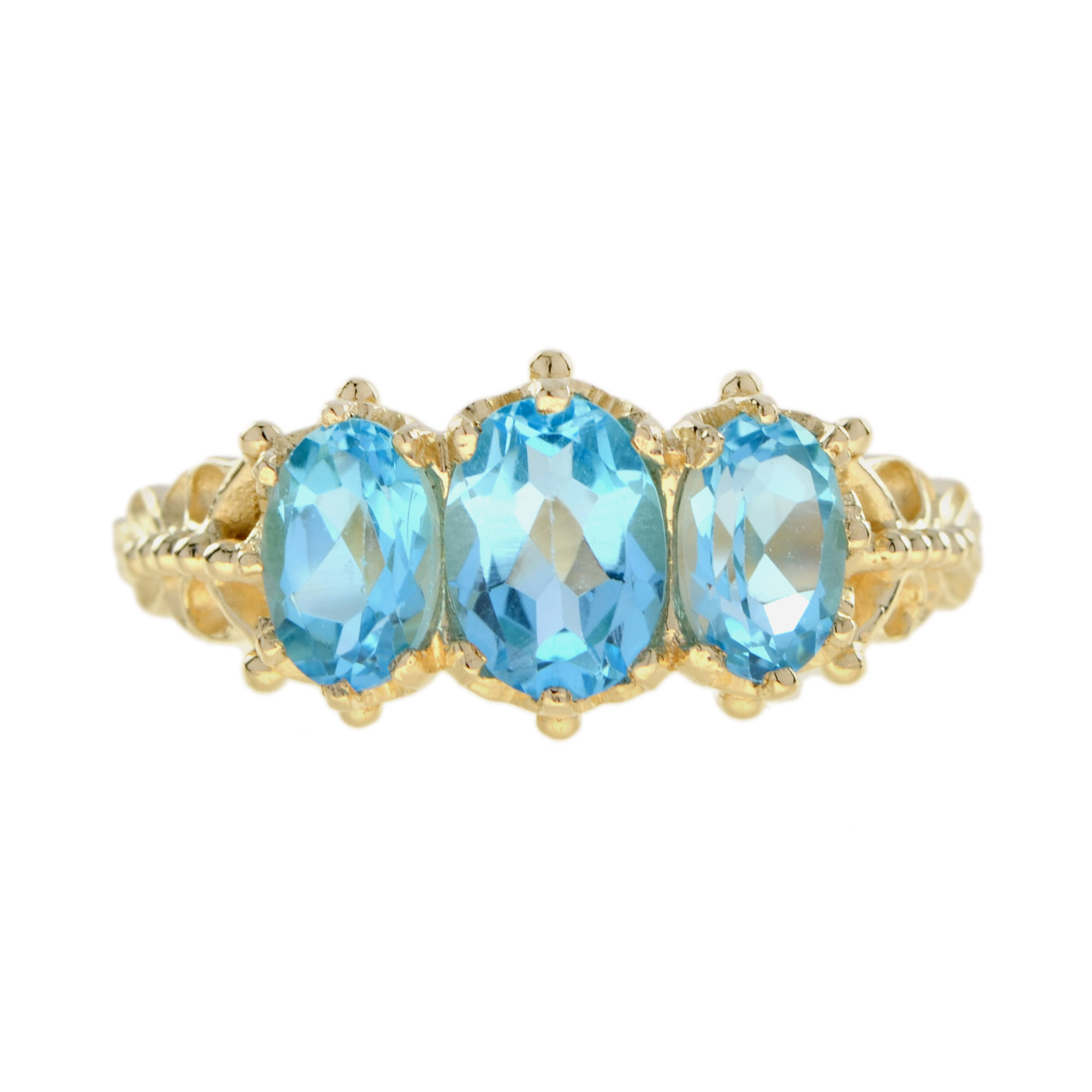 RING 9KY OVAL CUT SWISS BLUE TOPAZ TRILOGY