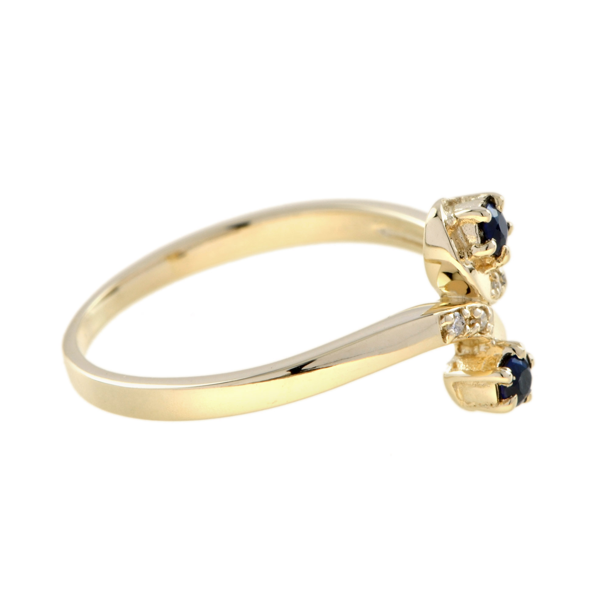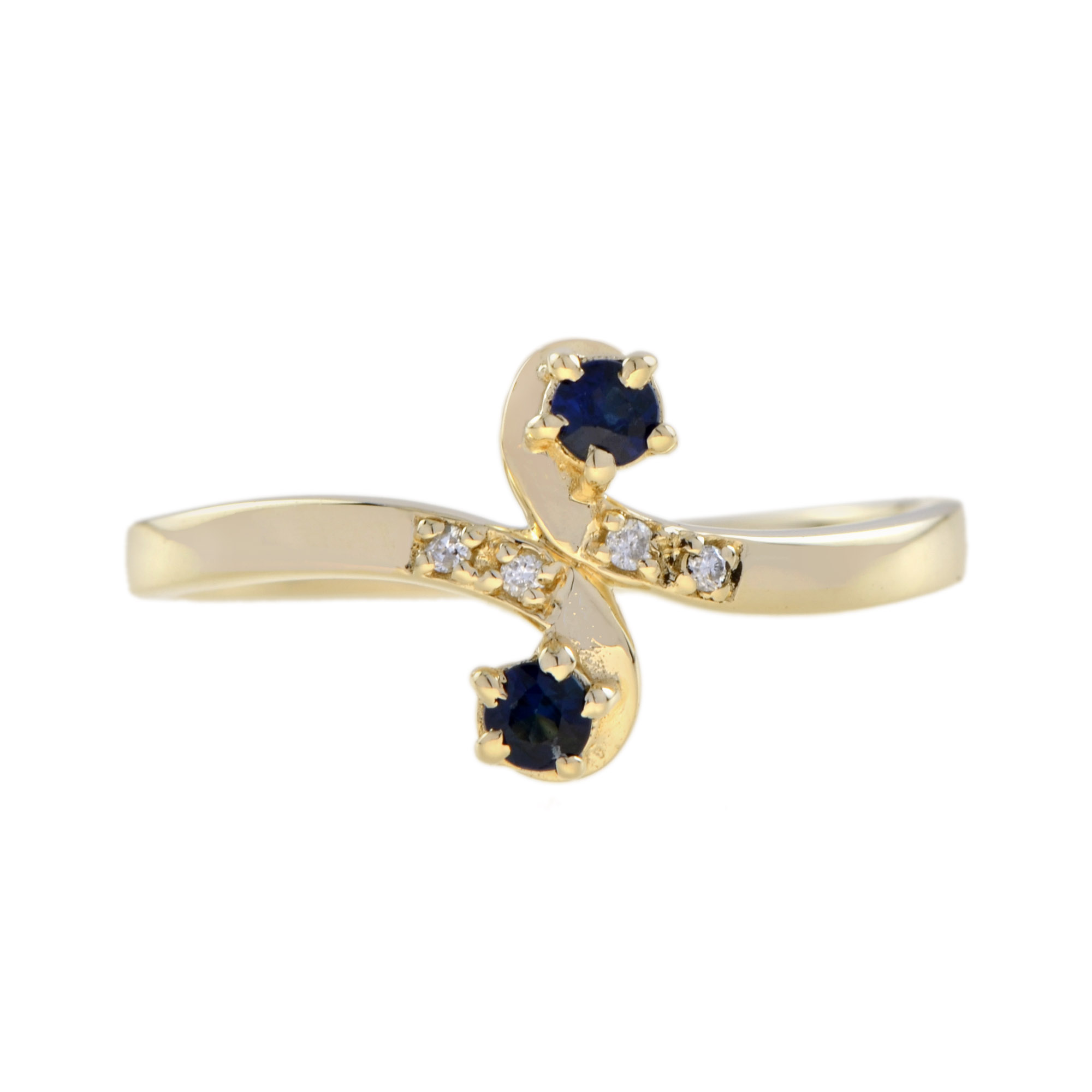 RING 9KY TWIST SAPPHIRE WITH DIAMONDS, 2 ROUND SAPPHIRE , 4 RDI=0.02 PTS